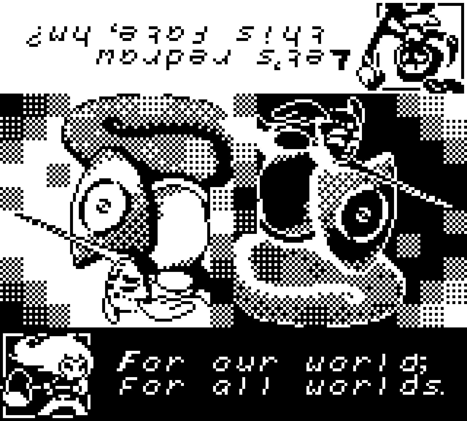 Well! Um, hi again everyone! Another GB Pixel Art Jam. It was really fun, but definitely much harder than last year's. I went into this with what some call zero planning, but I'm happy with what came out! And that I was able to shrink this down to 192 unique tiles exactly... I'm pretty exhausted at the moment, so if anyone wants to know what's going on in this piece, I'll be happy to answer in the comments! All I can say now is last time I made a piece with a gay couple (the lil' c'thulu guy was, in fact, the MC's boyfriend), and this year I've accidentally made an awesome lesbian couple! So that's nice :>